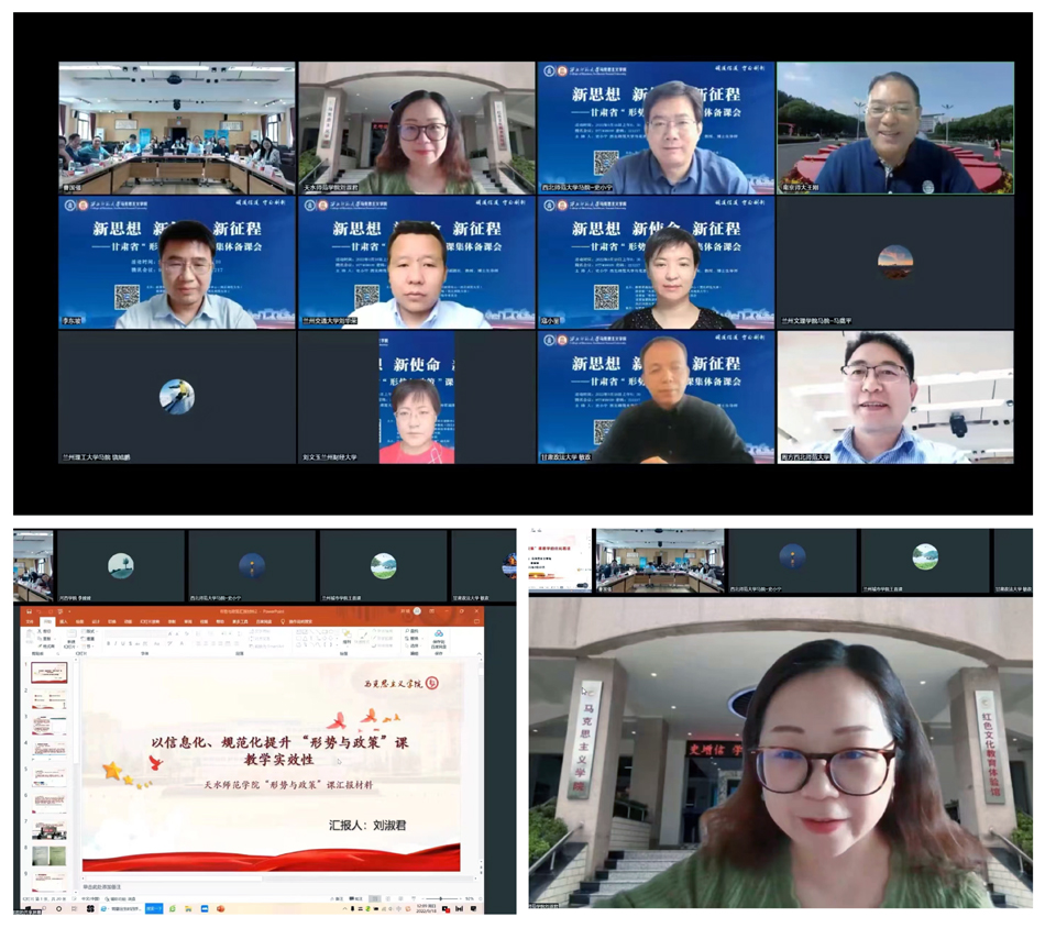 9月19日,学院全体“形势与政策”课教师线上参加由西北师范大学举办的“新思想 新使命 新征程”——甘肃省“形势与政策”课集体备课会。会议由西北师范大学学院院长兼党委宣传部副部长、博士生导师史小宁主持。