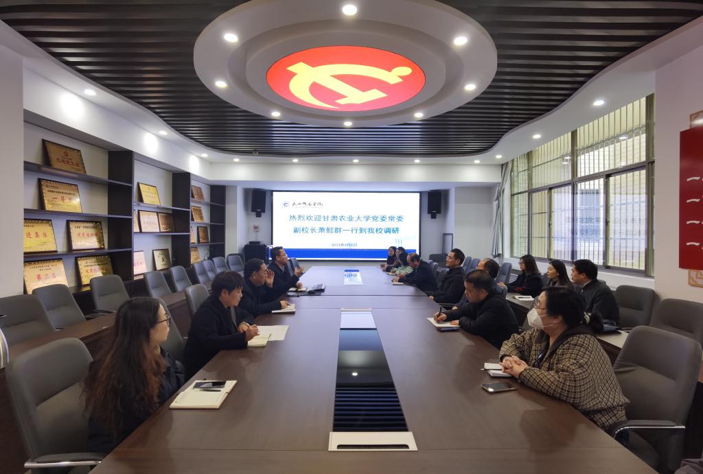 4月6日,甘肃农业大学党委常委、副校长萧懿群率领图书馆馆长邵世禄、图书馆副馆长何渊,学院党委书记闫翔、学院院长侯庆丰等一行15人到到我院和图书馆进行调研交流。