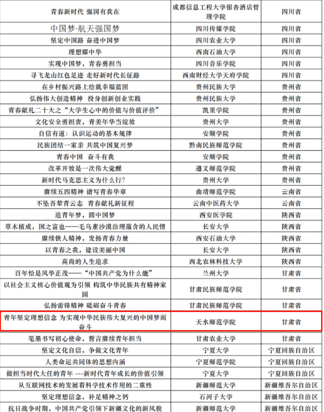 近日,第六届全国高校大学生讲思政课公开课展示活动评选结果揭晓,我院教师指导的学生参赛作品《青年坚定理想信念,为实现中华民族伟大复兴的中国梦而奋斗》荣获优秀奖。