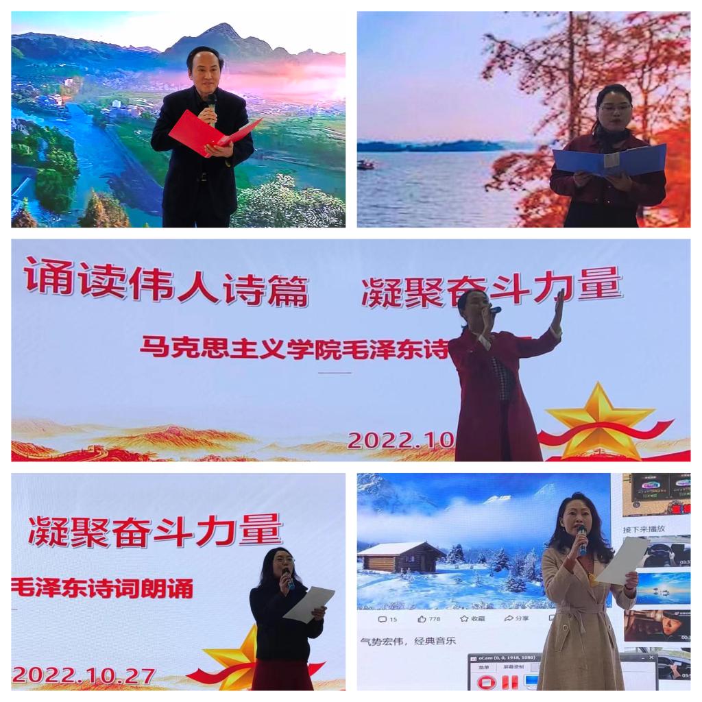 10月27日下午,学院分工会组织“诵读伟人诗篇、凝聚奋斗力量”毛泽东诗词朗诵会,全体学院在职员工参加活动。