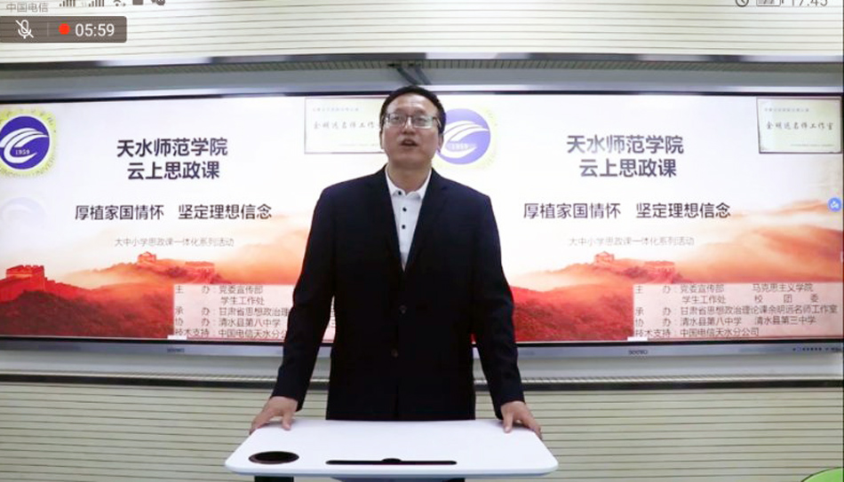 此次云上思政课活动由bwin必赢登录入口党委宣传部、学院、学生工作处、校团委主办,甘肃省思想政治理论课余明远名师工作室承办,清水县第三中学、第八中学协办,中国电信天水分公司提供技术支持。