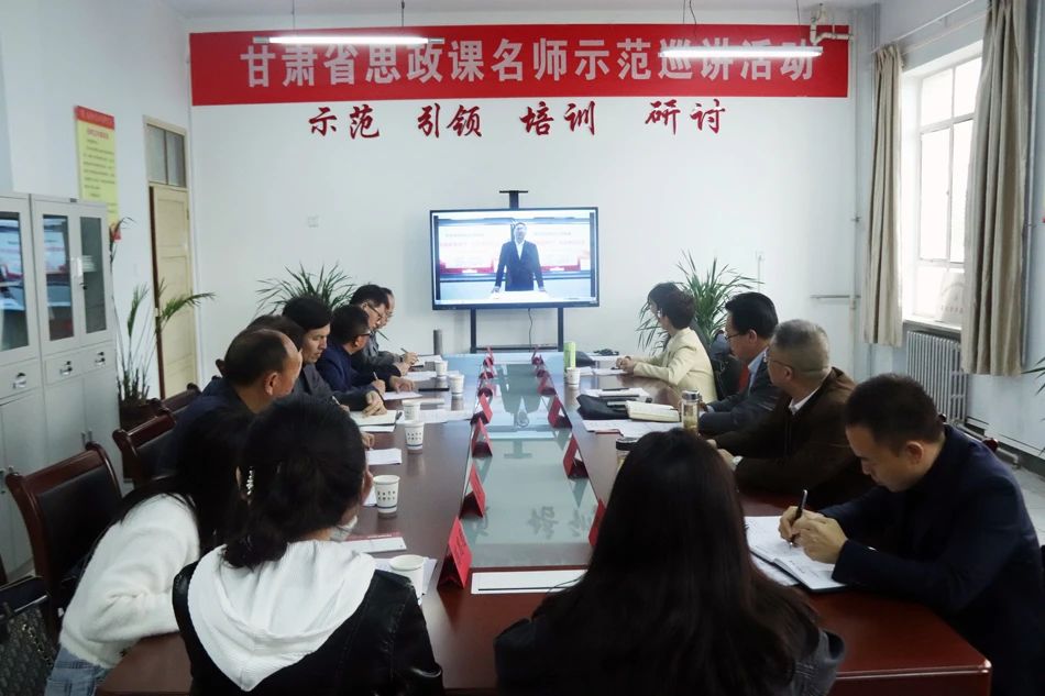 陇南师范高等专科学校副校长王胜青教授、教务处处长杨建东教授,成县教育局教研室负责人,两个名师工作室骨干成员及其成县思政课教师代表参加会议。