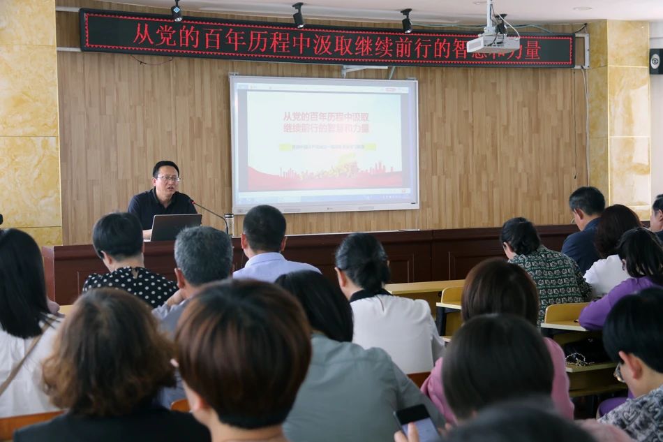在礼县实验小学,bwin必赢登录入口余明远教授,面向礼县实验小学思政课专兼职教师以及全体党员,做了题为“从党的百年历程中汲取继续前行的智慧和力量”的学术报告。报告以党的理论探索史和非凡奋斗史为逻辑体系,阐释开展党史学习教育的重大意义、党史学习的重点内容、开展党史学习教育的工作要求,着重针对小学思政课教师的困惑和困难,剖析了根据小学生思想实际创新性教学,引导思政课教师在党史学习教育中明理、增信、崇德、力行,倡导其他教师充分挖掘和运用课程思政资源,构建思政课程与课程思政同向同行、同频共振的良好格局。