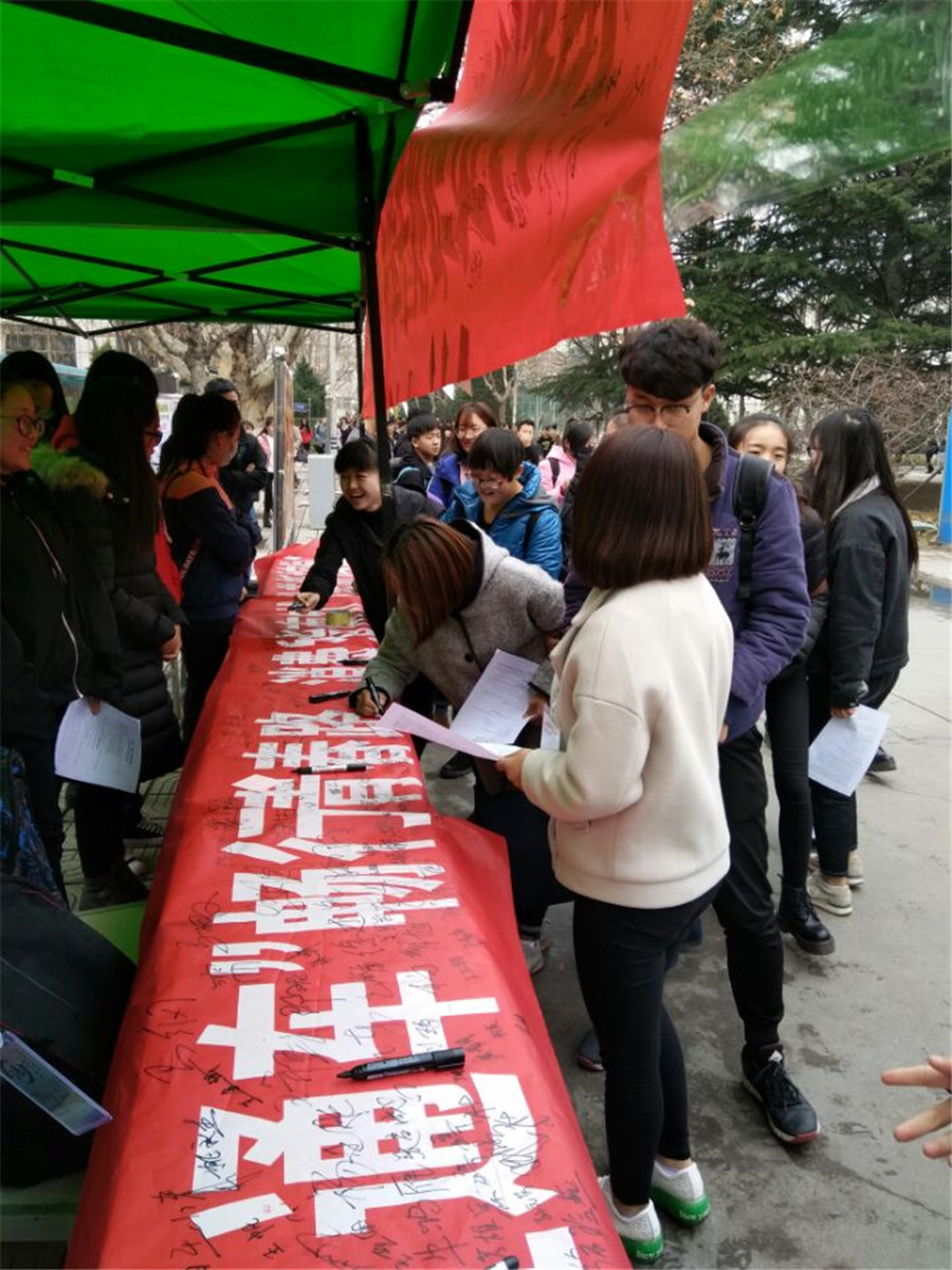 每年的3·15都是广大消费者的“节日”,为了扩大对消费者权益保护的宣传,更好地开展保护消费者权益工作,政法学院于3月15日在东操场门口举行了消费者权益日宣传活动。活动通过横幅、展板、现场签名、散发宣传单、现场法律咨询等形式进行,活动开展效果良好。活动中,广大学生能够积极的参与到活动中,在横幅上留下自己的名字,气氛也越来越热烈。分管学生工作的赵世明副院长也开展了宣传,并签下了名字。