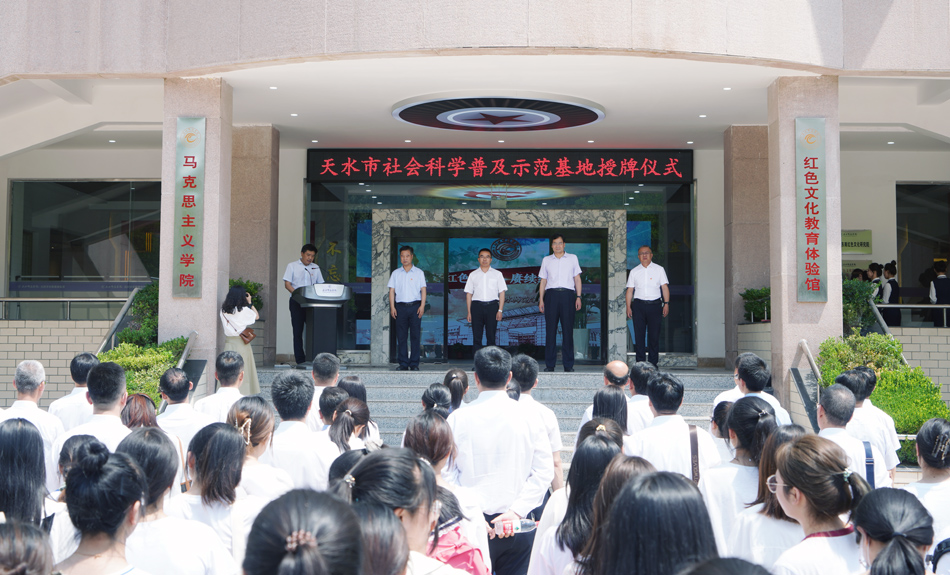7月1日,天水市第三批社会科学普及示范基地揭牌授牌仪式在学校红色文化教育体验馆举行。市委常委、宣传部部长王文东,bwin必赢登录入口党委书记李正元共同为基地揭牌。市委宣传部副部长阎小鹏主持揭牌仪式,我校学院党总支书记、红色文化教育体验馆馆长刘建军作发言,60余名师生代表参加揭牌仪式。