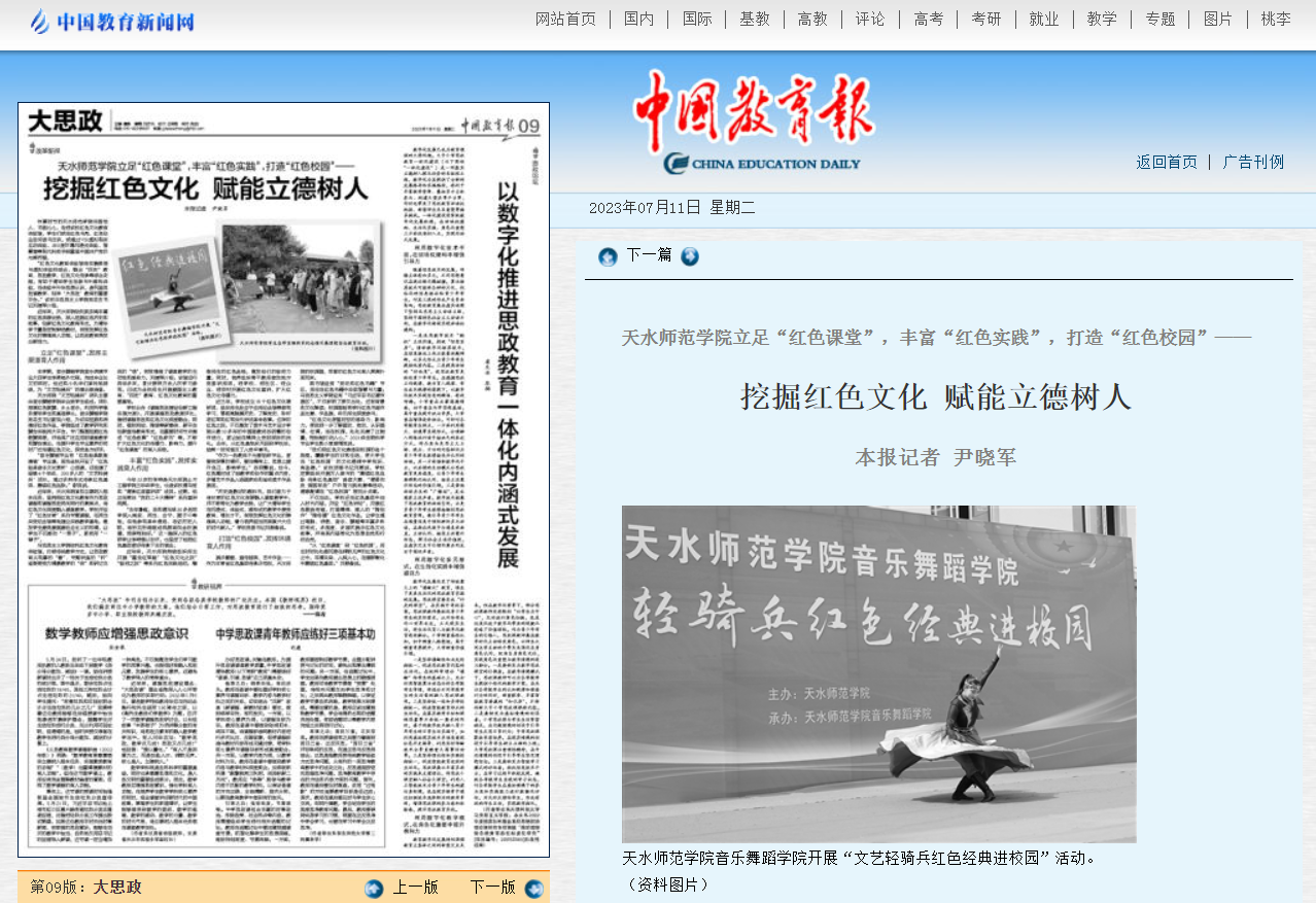 近年来,天水师院依托陇东南丰富的红色资源优势,深入挖掘红色历史和故事,创新红色文化教育形式,为青年学子量身定制鲜活教材,有效发挥红色文化的铸魂育人功能,让思政教育焕发出新活力。